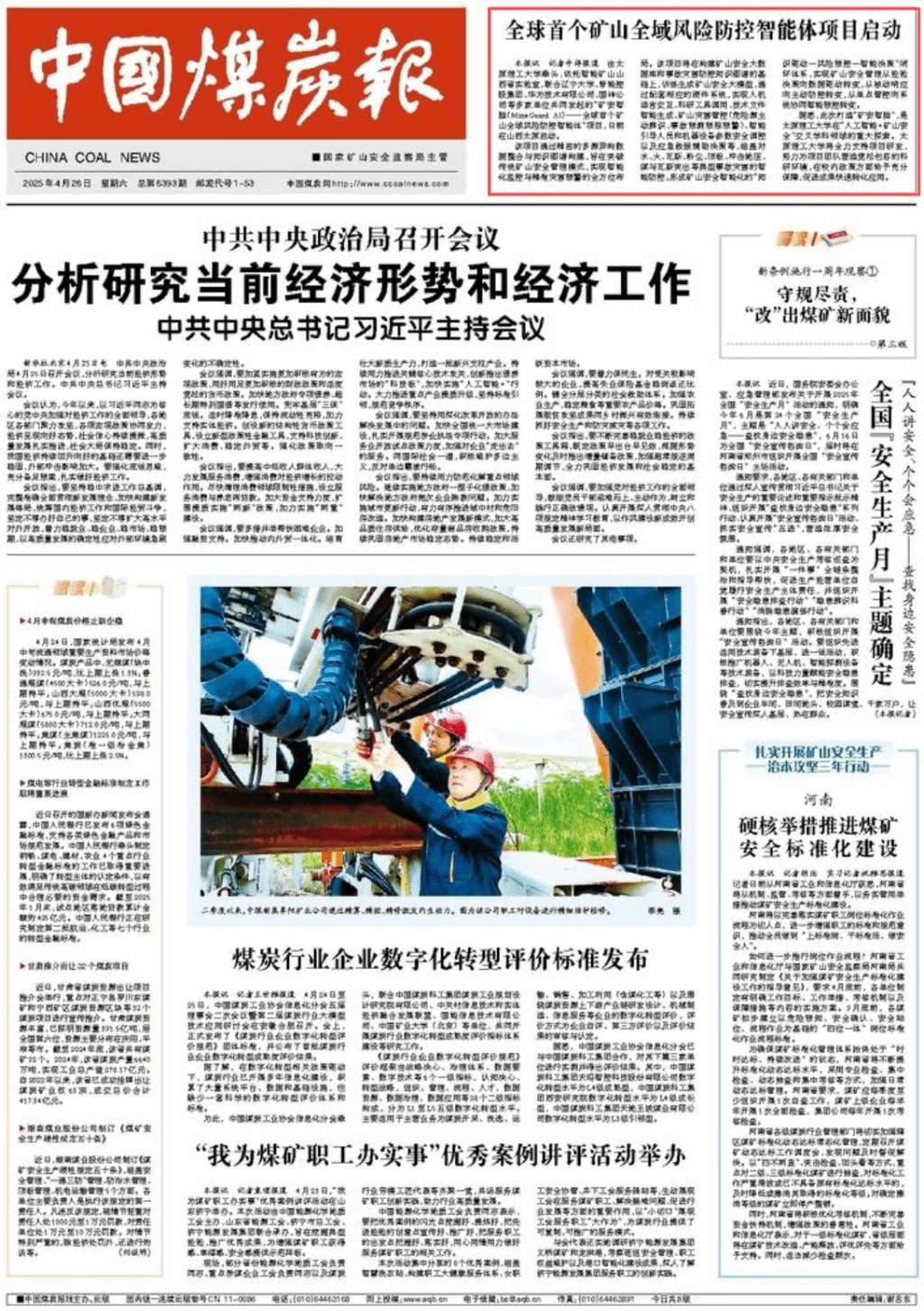 4月26日,《中国煤炭报》第1版以《全球首个矿山全域风险防控智能体项目启动》为题对永利官网全球首个“矿安智脑”项目启动会进行报道。现将全文转载如下。