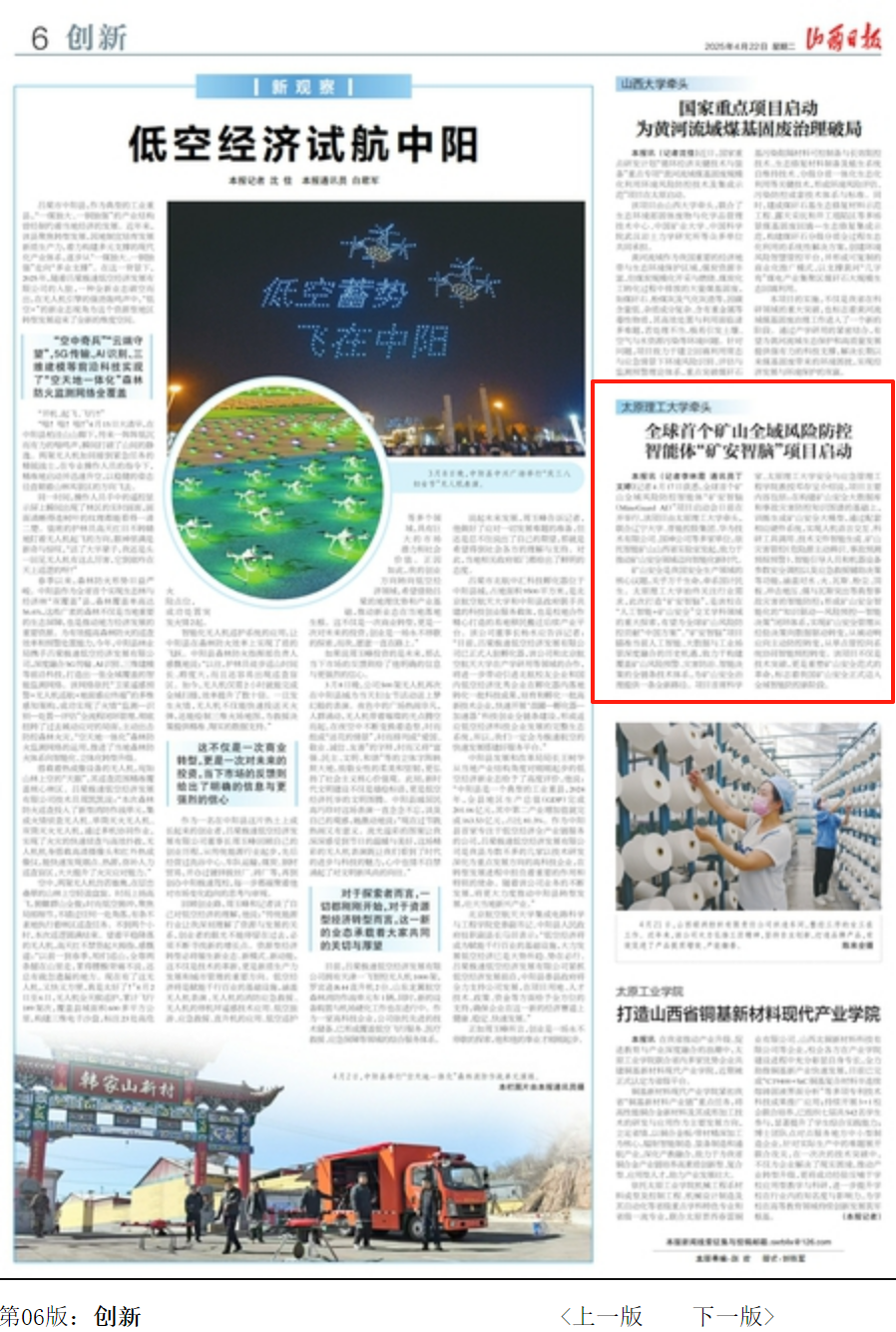 4月22日,《山西日报》以《yl23455永利官网牵头:全球首个矿山全域风险防控智能体“矿安智脑”项目启动》为题对永利官网全球首个“矿安智脑”项目启动会进行报道。现将全文转载如下。