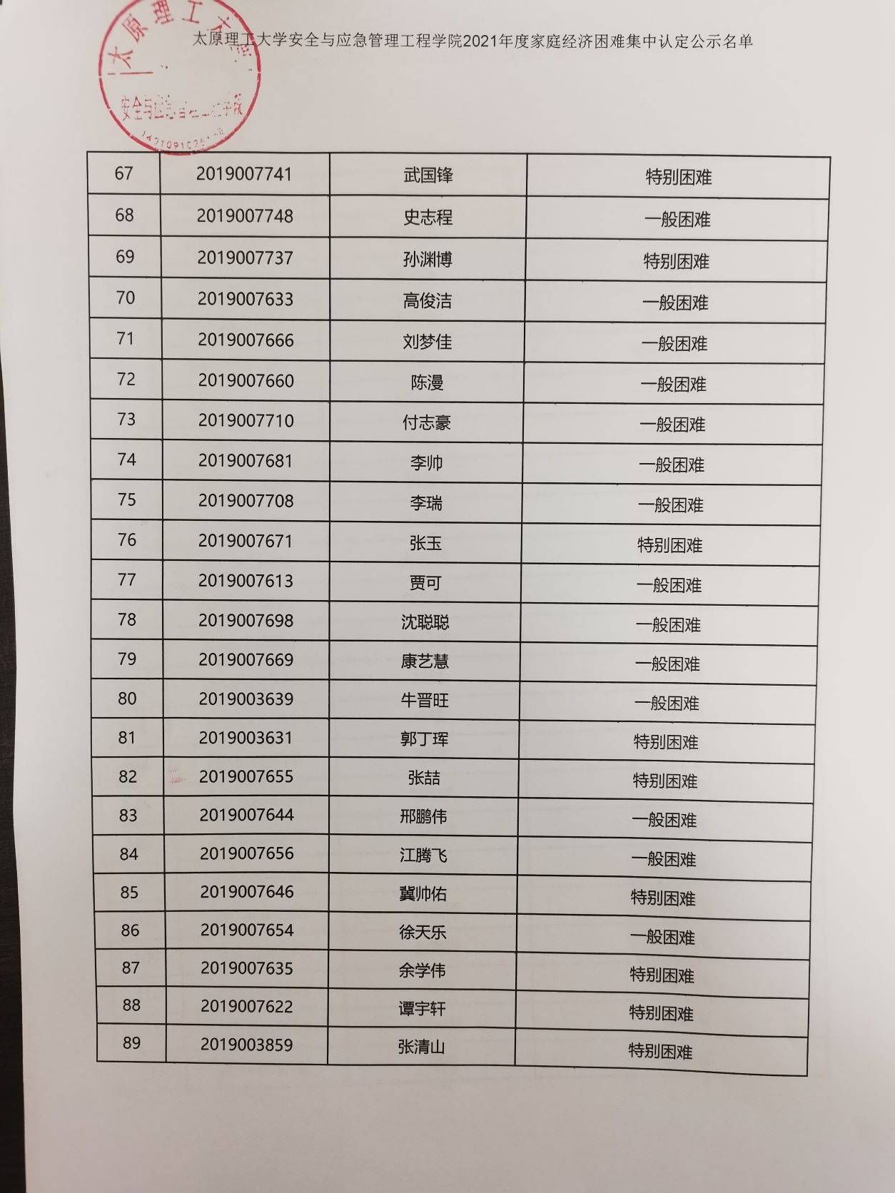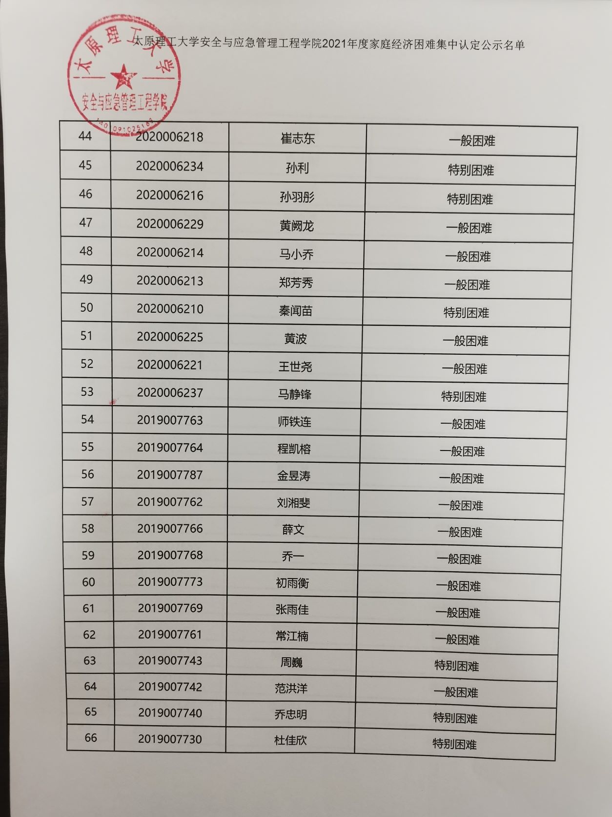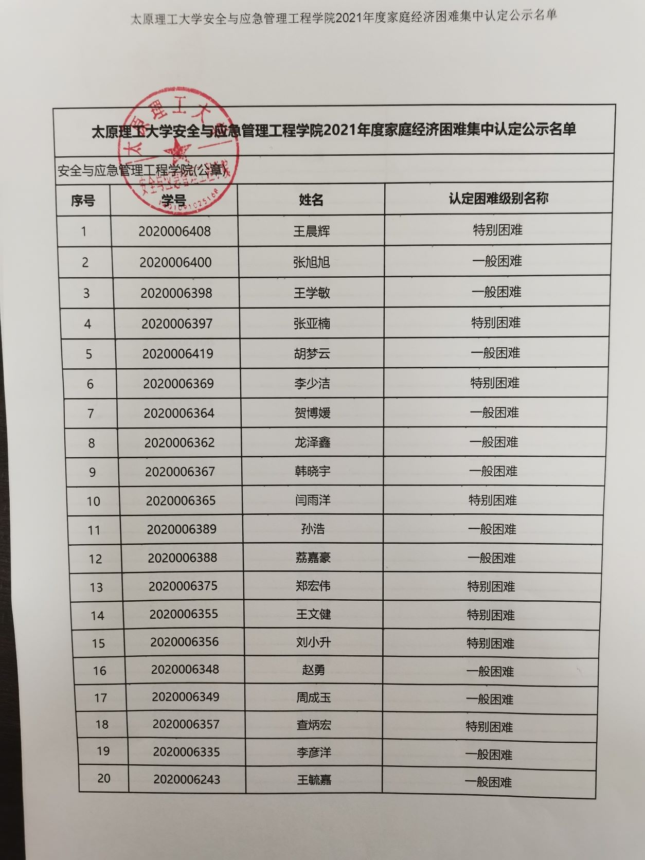 yl23455永利官网2021年度家庭经济困难集中认定名单公示