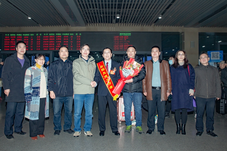 11月24日下午,当身披红绶带、胸佩全国先进工作者奖章的邓存宝教授走出太原南站时,受到了校工会和安全与应急管理学院等方面人员的热烈欢迎。