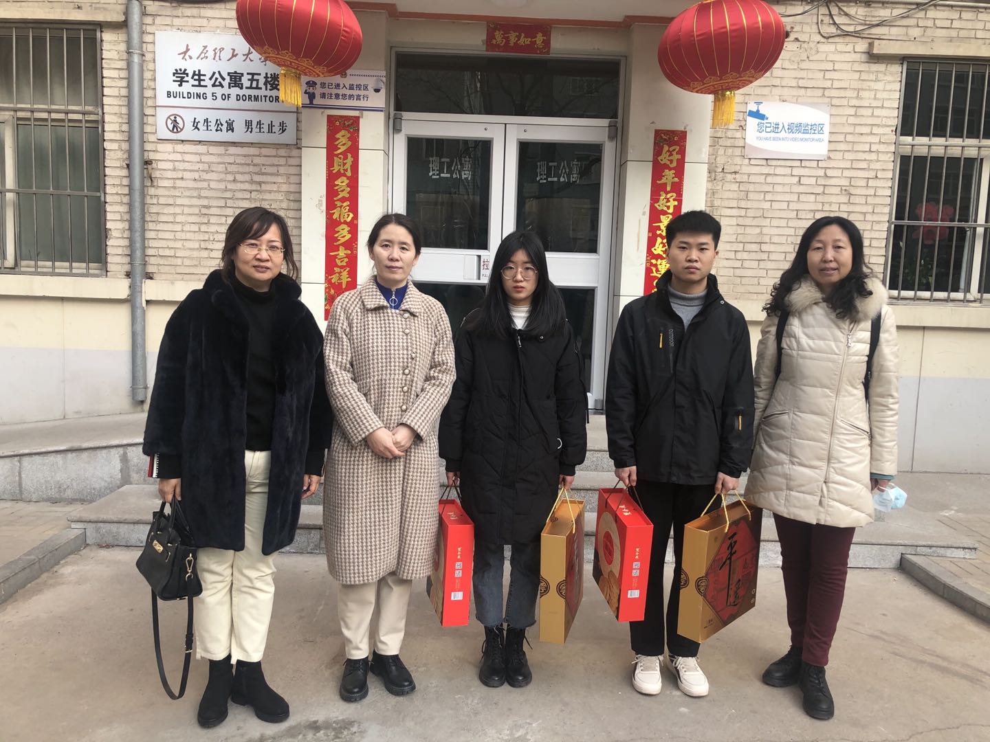 2月9日,yl23455永利官网党委副书记侯彩霞和学院党政办主任、学工办主任代表学院前去看望两名家在河北省石家庄藁城区的留校学生,给他们送去温暖关爱和诚挚慰问。