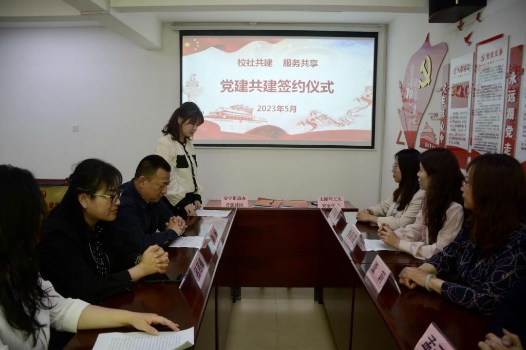 签约仪式上,yl23455永利官网yl23455永利官网与共建单位首创社区党委一道共商校社党建工作、共谋校社发展新思路,双方现场签订了党建共建协议书。