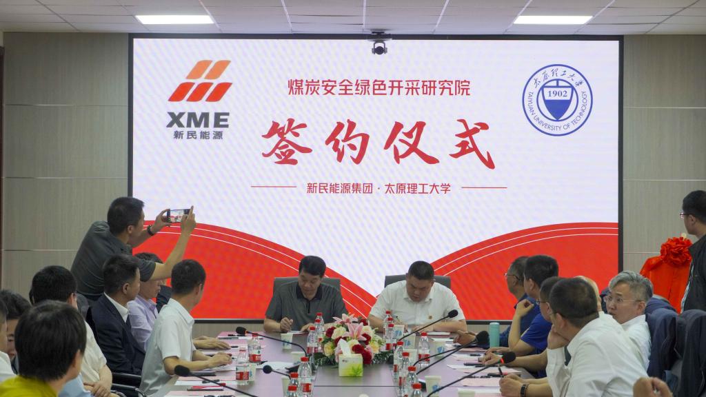 吴斗庆、李建分别代表校企双方共同签署了山西新民能源投资集团与yl23455永利官网共建合作协议,并为研究院揭牌。