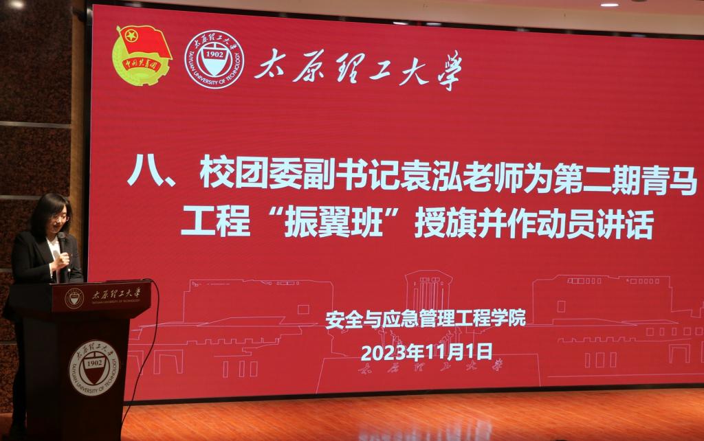 最后,袁泓为第二期青马工程“振翼班”学员授旗并作动员讲话。她首先向参加本次“振翼班”培训的学员表示热烈的祝贺,就如何成长为时代合格的青年马克思主义者给予同学们谆谆教诲和殷切鼓励,并提出三点建议:“一是深入理论学习,坚定理想信念;二是坚持学思践悟,实践担当作为;三是磨练过硬本领,时代挺膺担当。”她希望大家时刻严格要求自己,做到学思用贯通,知信行统一,努力成为一名信仰坚定、能力突出、素质优良、作风过硬的青年政治骨干,做一名“有理想、有追求、有担当、有作为、有品质、有修养”的“六有”大学生。