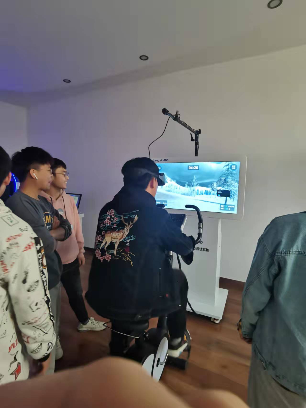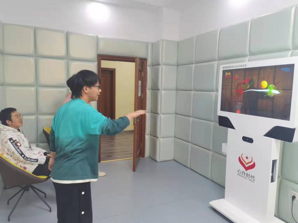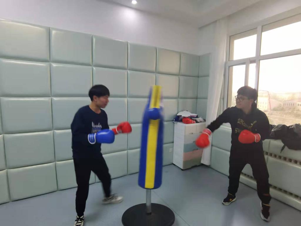 第一站来到情绪宣泄室体验。室内配置有宣泄人、宣泄系统及全包裹安全宣泄墙面等。体验人员通过身体强烈运动方式,将内心的烦躁、压抑等不愉快情绪进行宣泄。第二站来到VR体验室,该室配备有VR身心调试系统、VR动感单车,通过沉浸式体验,结合动感单车骑行运动的方式来缓解体验者的心理压力。第三站来到音乐放松室,室内配置有音乐放松椅,体感音波床。体验人员可通过音乐振动缓解疲劳,减轻压力,舒缓情绪。