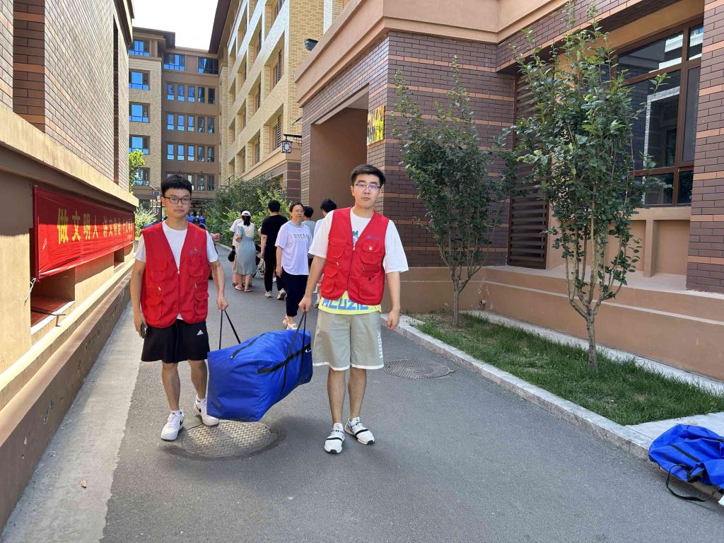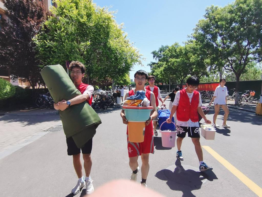 学生党员、志愿者在党支部书记康莉老师和党支部副书记罗渊俊老师的带领下穿梭在各个公寓楼中,维持搬迁秩序,帮助搬迁行李,竭尽全力帮助同学们解决各类问题,打通“宿舍搬迁的最后一段路”。他们头顶烈日、肩扛行李,忙碌的身影形成一道靓丽的风景线。